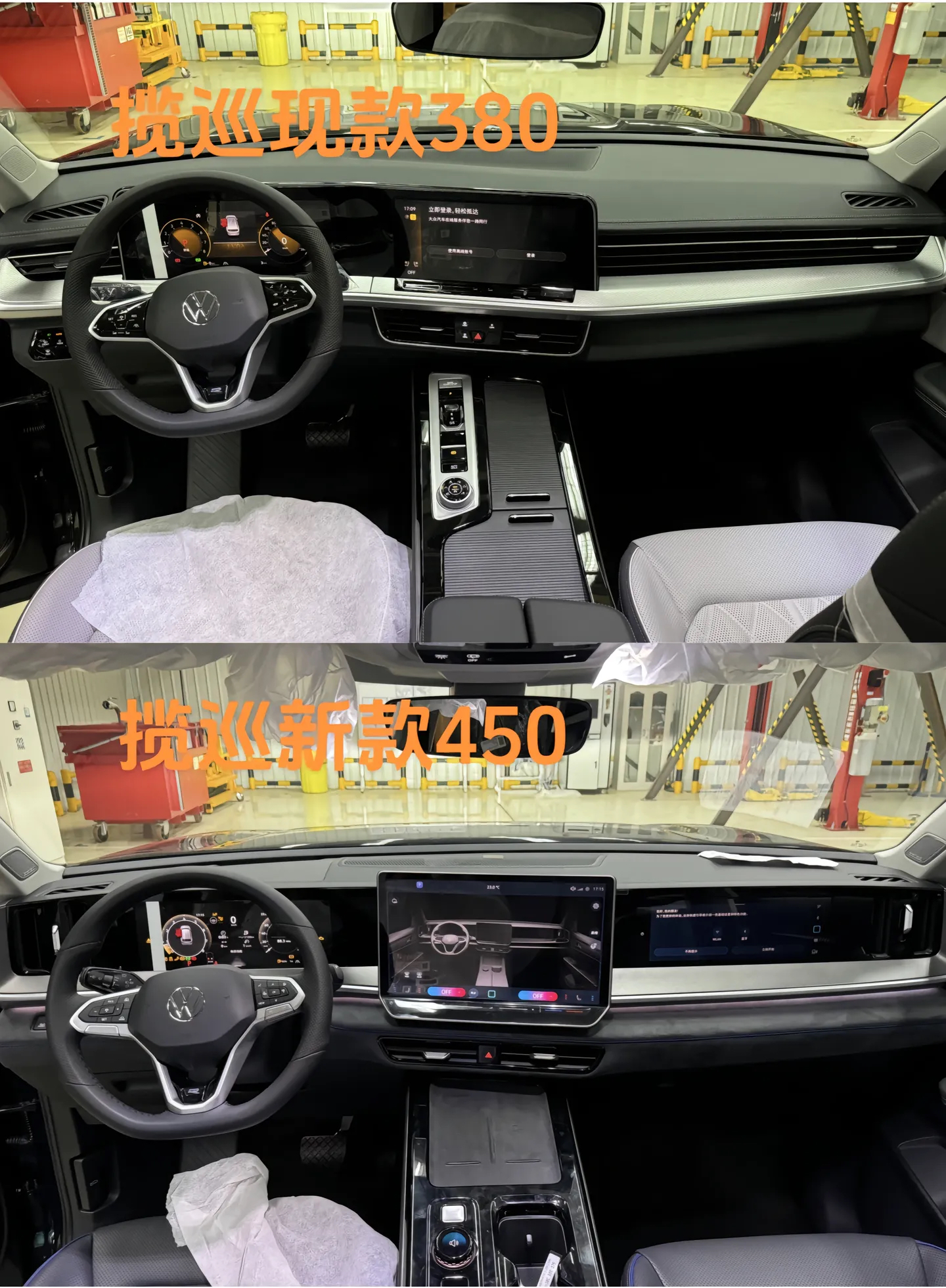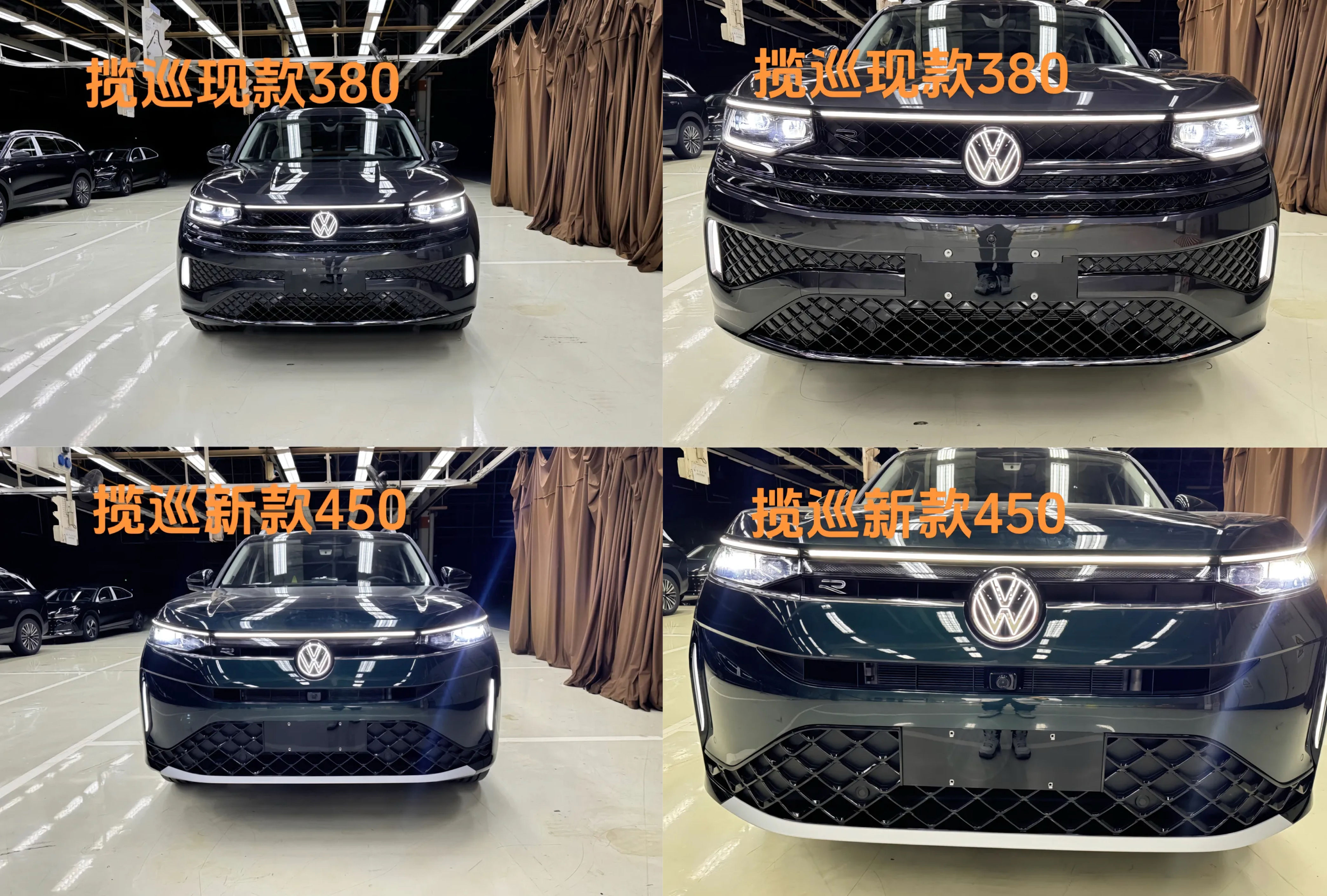 对比现款车型来看,全新揽巡的前脸将取消复杂的线条点缀,整体看来更为简洁大气。其中,R-Line车型采用大尺寸熏黑网状下格栅,并与两侧竖置导风槽相连,兼顾运动感与视觉冲击力;而普通版车型则采用类似封闭式的前脸,下格栅造型更为收敛。另外新车还换装了更为扁平化的IQ. Light矩阵大灯组,上方环绕引擎盖的LED灯带没有缺席,加之“VW”发光logo,又营造出科技气息。